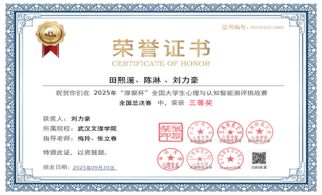 此次获奖不仅是对我校参赛团队专业素养、创新精神与协作能力的充分肯定,更是对学校在心理学与人工智能交叉学科教育成果的有力见证。这一成绩的取得,凝聚了指导教师的辛勤付出、参赛同学的刻苦钻研,以及学校在科研创新与学科建设上的持续投入。展望未来,我校将继续深化“以赛促教、以赛促学”的育人模式,鼓励更多学子在心理学与智能科技的融合领域积极探索,为培养具有创新思维和实践能力的复合型人才而不懈努力。