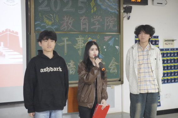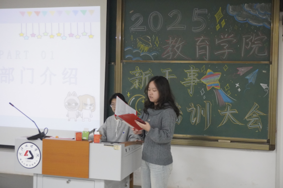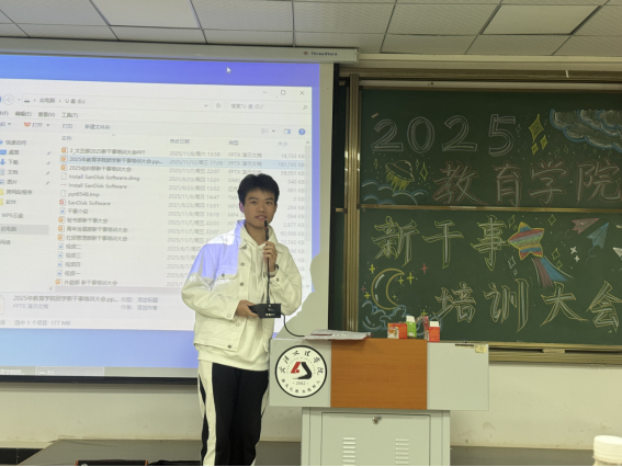 为帮助新干事快速熟悉团学组织与部门工作,助力其融入团队协作、明确责任初心并提升履职能力,教育学院分团委、学生会于2025年11月12日晚在4-221室举办了新干事培训大会。